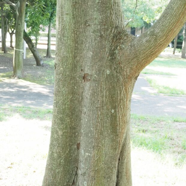 老木になると、 樹皮がはがれてきます。 また根元は板根状(根元が板のようにせり出す)になります。