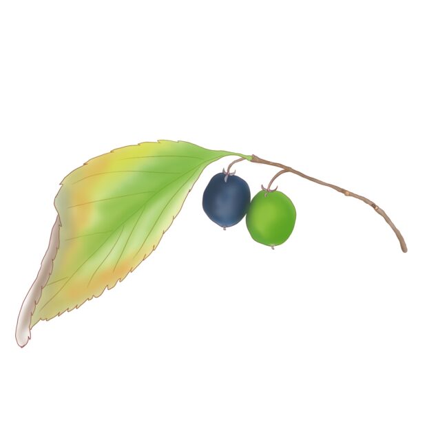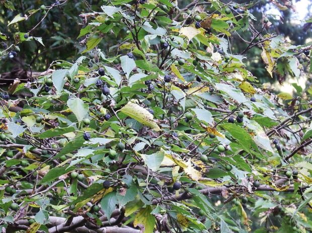 秋にみのる黒い実は、 干し柿のような味でほんのり甘いです。