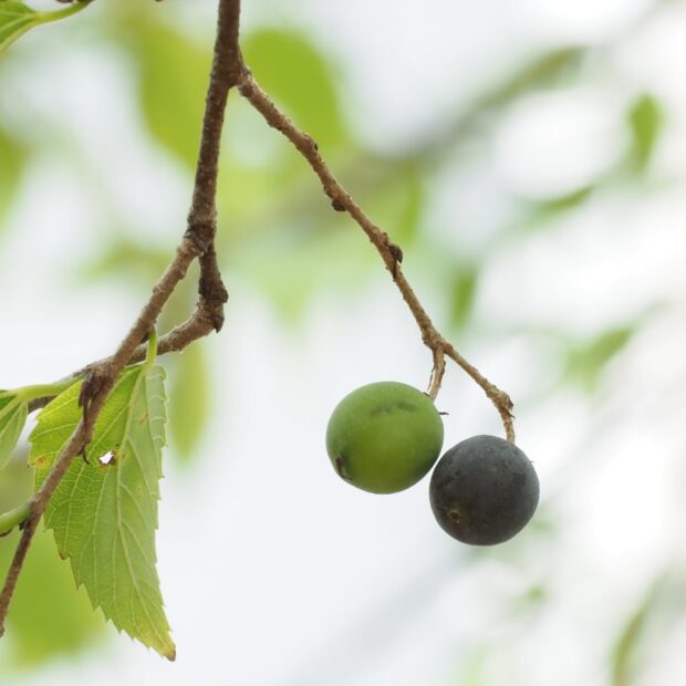 ムクノキは植える木ではなく、 ほぼ野生児です。 鳥が種を食べてフンで落とし、 その種から周りを押しのけるように大きくなり、 「こんなりっぱな木あったっけ?」と、 しれっと名木にまでのし上がる木です。 初期の生長がとても早く、 あっという間に雑草から木になります。 仕事が速い木なのかもしれません。 そして鳥が好きな実をつけてまた広がっていきます。