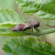春~秋に見られる小さなタマムシが、 葉をふちから食べ、 葉が食べあとだらけになります。