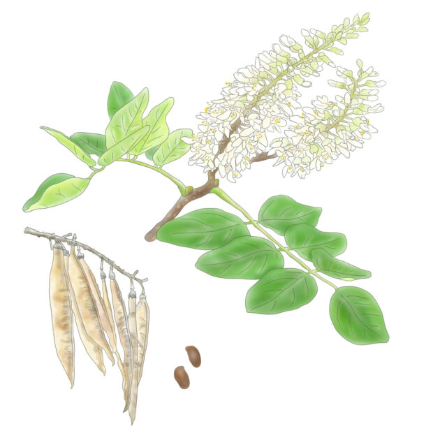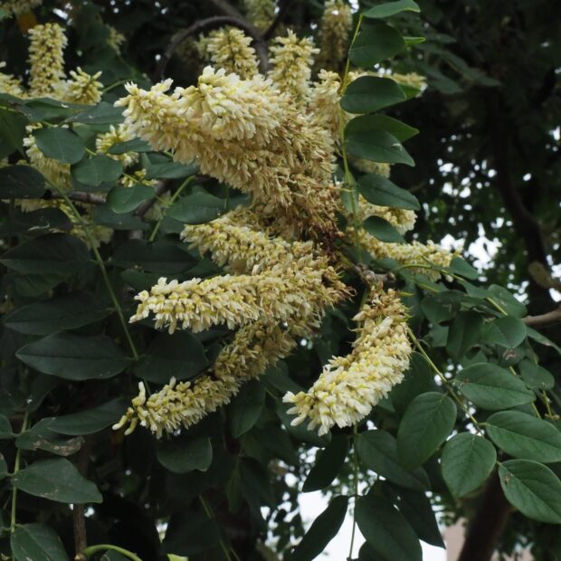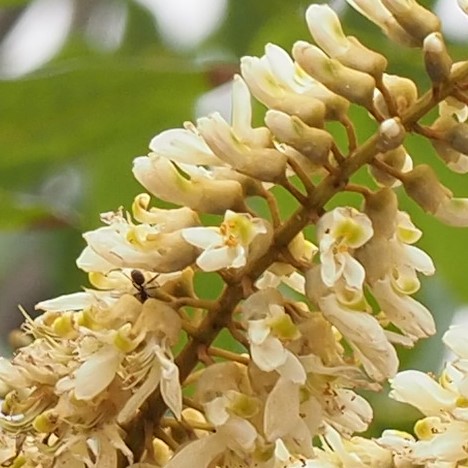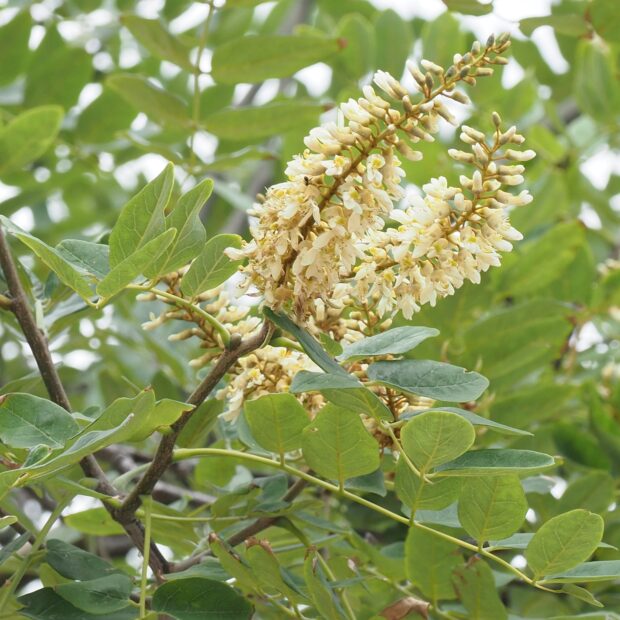 夏にフジの花を上向きにしたような白い花を咲かせます。 元々エンジュと呼ばれていましたが、 中国からやってきた別の木に名前をとられ、 自分はイヌエンジュという名前にされてしまいました。