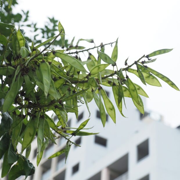 枝に小さな葉が3~6対、 対になってつき、 先端は一枚だけつきます.(→奇数羽状複葉)