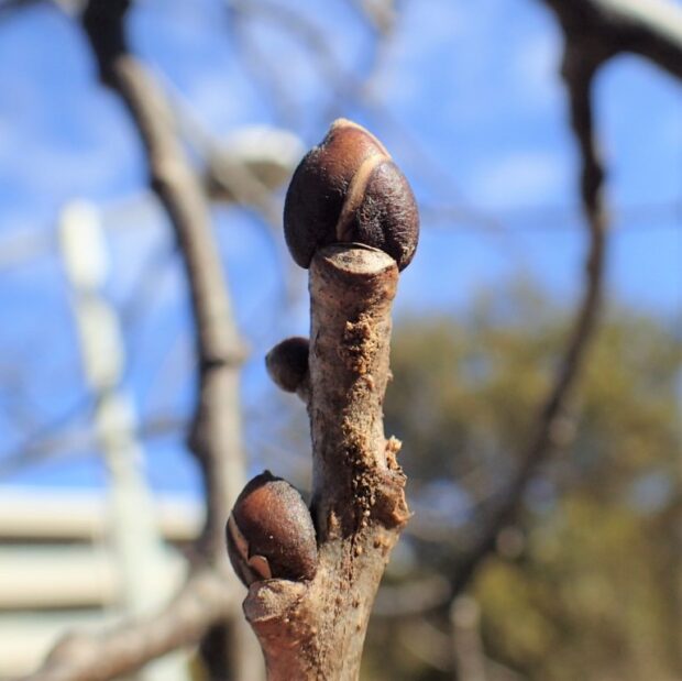 鱗片(がりん=冬芽をつつむうろこ状の皮)は2~3枚でです。