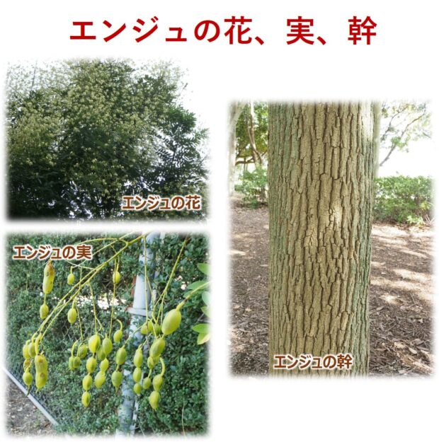 ・本種は元々エンジュと呼ばれていて、 その名前と延寿(=寿命が延びる)とかけて、 縁起が良い木として、 よく家の入り口や真北に植えられました。