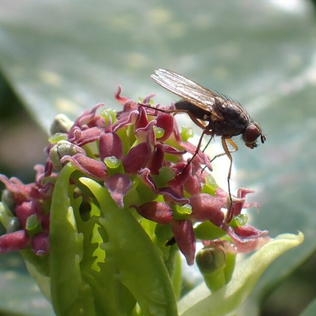 花には、 冬を越したハナアブやハエの仲間がやって来ます。