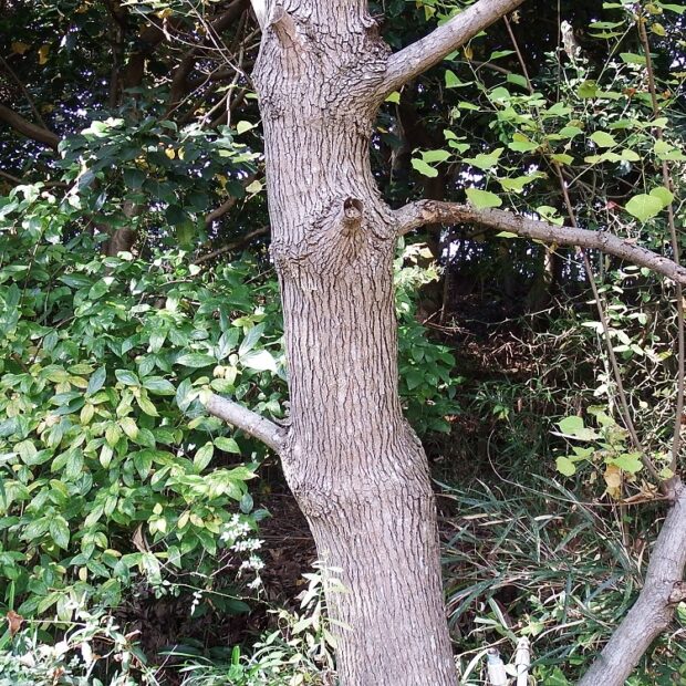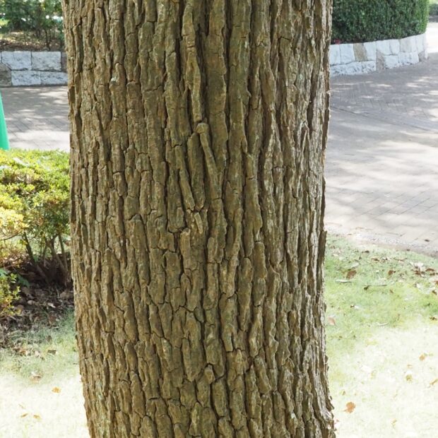 樹皮ははじめは滑らかで灰褐色ですが、 のちに不規則に縦に裂けていきます。
