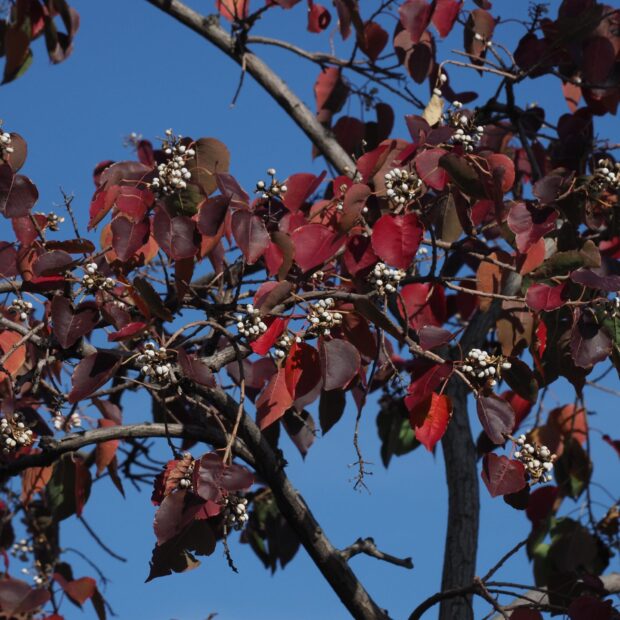 秋には紅葉し白い実との対比がきれいです。 紅葉がきれいなので街路樹としても植えられています。