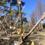 園芸品種のソシンロウバイの方が華やかなのでたくさん植えられていますが、 こちらが本来のロウバイになります。