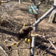 花芽はほぼ球形に近く、 どちらの芽にも毛が生えています。