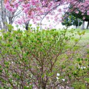 「ヤシオ」の語源は「八入」で、 布を繰り返し染料に浸して色付けする作業をすることを指します。 「アカヤシオ」は紅色の花が真っ赤に染まった布のようだということで名前がつきました。 それに対して花が白いことから「シロヤシオ」という名前がつきました。 図鑑で引く際はこの名前で載っていることが多いです。