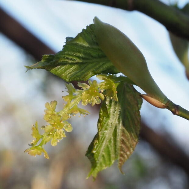 花にはいろいろなカミキリムシがやって来ます。 新芽が芽吹く頃、 モミジニタイケアブラムシが活動を始めます。