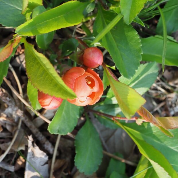 ボケに似ていて小型の低木なので草の名が付きました。 ボケは外来種ですが、 クサボケは元々日本にある在来種です。