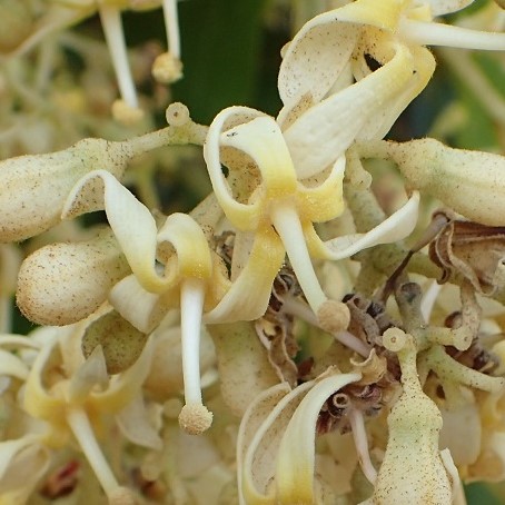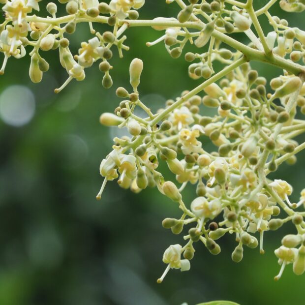 小さなクリーム色の花が集まって咲きます。