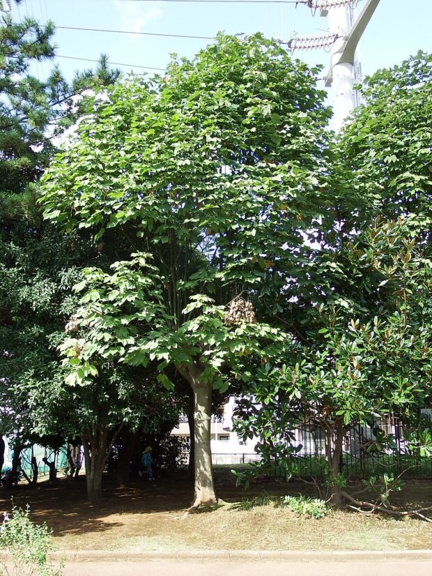 アオギリは葉が大きく、 樹皮も緑色で個性的なルックスです。 初期の成長が早く、 ぐんぐん大きくなります。 試練(剪定や移植)に強いとはあまり思えないのですが、 粘り強さはあるようで、 広島の「被爆したアオギリ」はその生命力が人々に感動を与え、 国内外いろいろな場所へ植えられ、 育てられています。