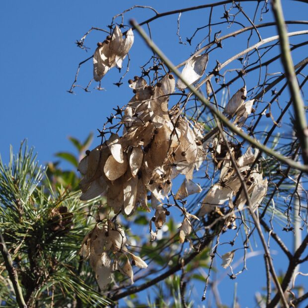 実は袋状になっていて、 熟す前に割れ、 スプーンのような形になります。 これは風がふくと回転しながら飛んでいきます。