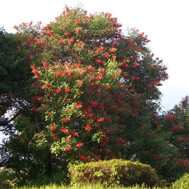 ブラジル生まれなので、 とにかく寒いのが苦手。 関東より北では寒さに耐えられません。 成長が早いので、 毎年冬前に丸坊主にされがちです。 切られても枝葉をぐんぐん伸ばして、 真っ赤な花を咲かせます。