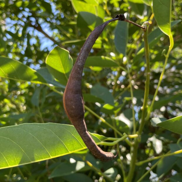 細長い筒状の豆の実ですが、 なかなか実がなりません。
