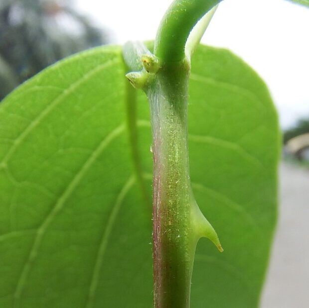 よく見ると葉の柄には腺点(蜜などを分泌する器官)、 棘もあります。 (腺点や棘はない葉もあります。 )