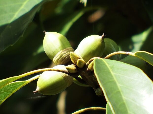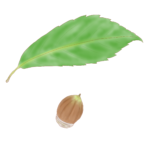 帽子が縞模様のドングリです。 春に花が咲いてその年の秋に熟します。