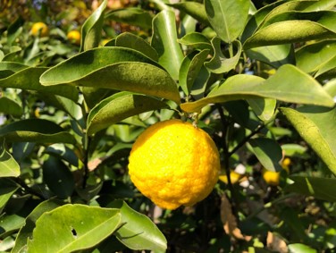 香りはユズと似ていますが、 弱いです。 未熟な緑の実を薬味などに使ったりします。