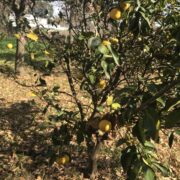 ミカンの仲間には、 アゲハチョウの仲間がやってきます。 幼虫は葉をモリモリ食べます。