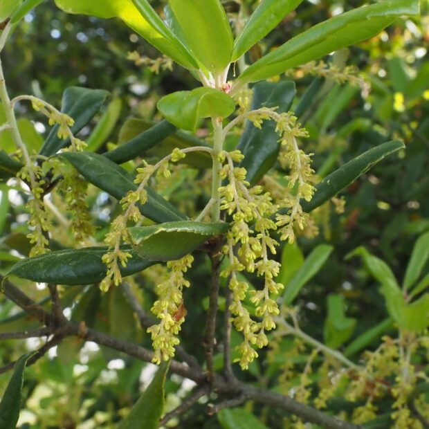 自然では海岸近くの風の強い場所にはえるドングリのなる木です。 成長がゆっくりで背が低めです。 また幹が大変硬くて、 その木材でガラスに傷がつくほど硬いです。 備長炭の材料としても知られています。