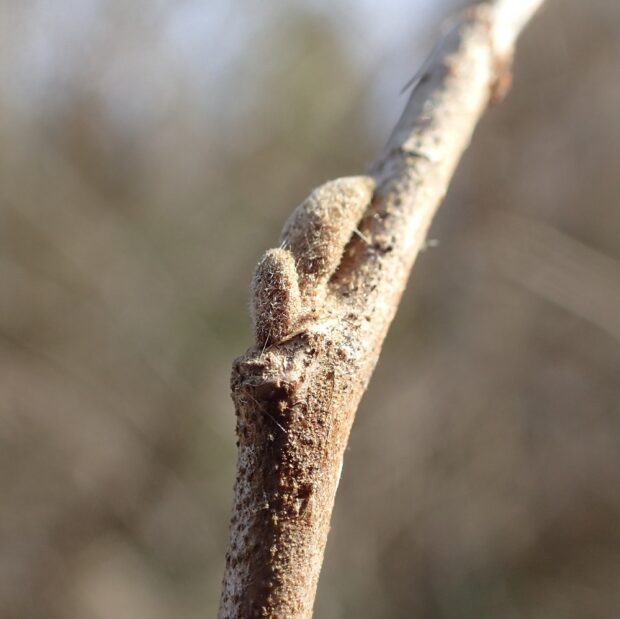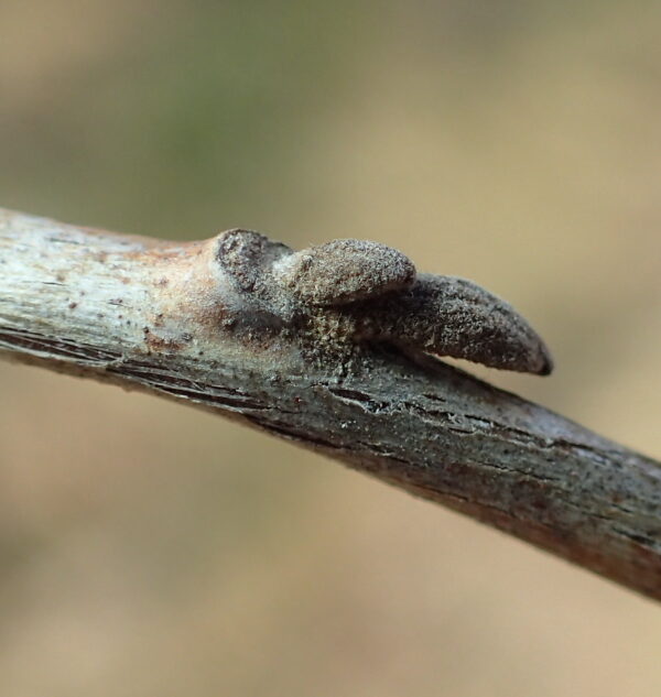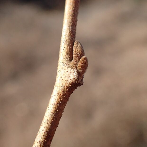 表面には星状毛が発達します。 冬芽の根元には小さな副芽(ふくが)があります。