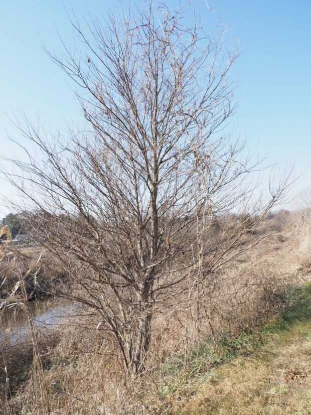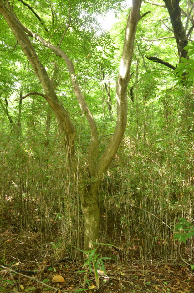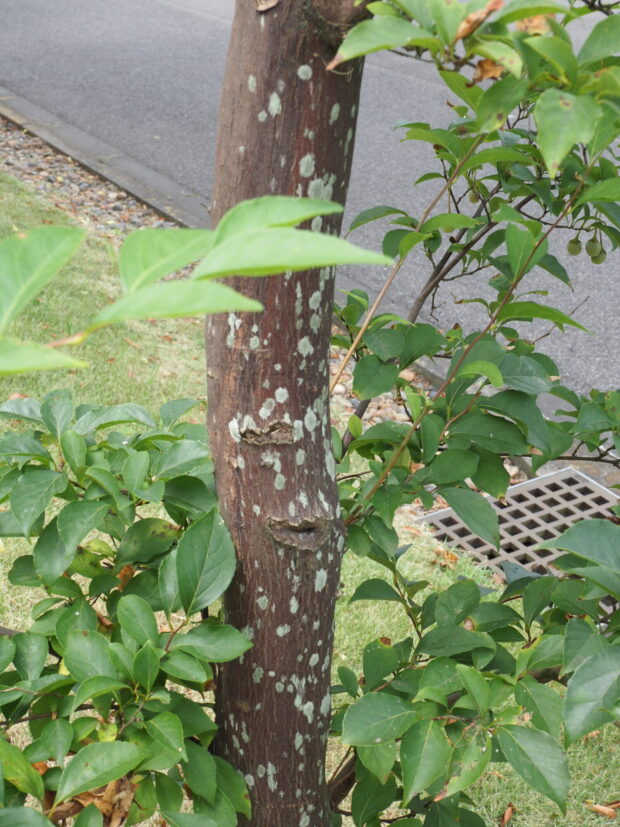 黒っぽくなめらかな樹皮。 老木になると浅く避けます。