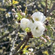 前年の枝に花芽がつきます。 花と葉が一緒に出てくるのが特徴です。