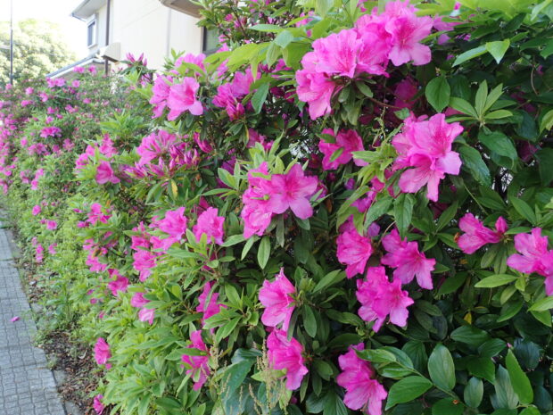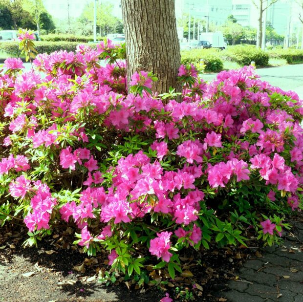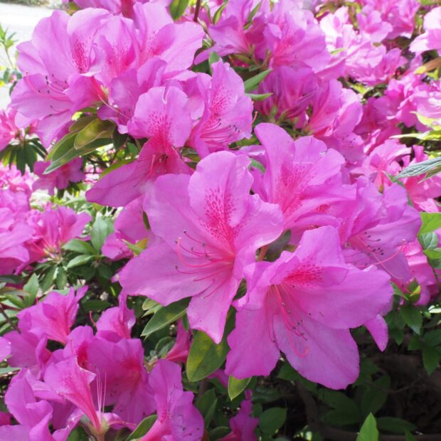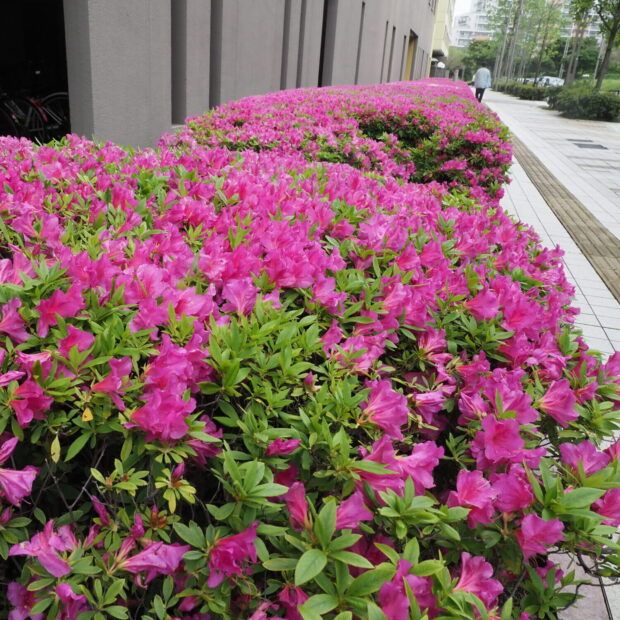 長崎県の旧平戸藩の武家屋敷で、 400年以上も門外不出の花として育てられてきたツツジの品種群をヒラドツツジと呼びます。 オオムラサキは、 その中で特に優れた品種とされているものの一つです。 1950年代以降、 その花の美しさと育てやすさから、 全国で植えられるようになりました。