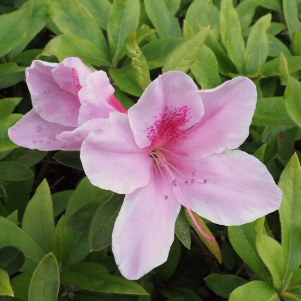 葉が白っぽくなっていたら、 葉の裏をそっと覗いてみましょう。 ツツジグンバイなど小さな虫たちが隠れています。
