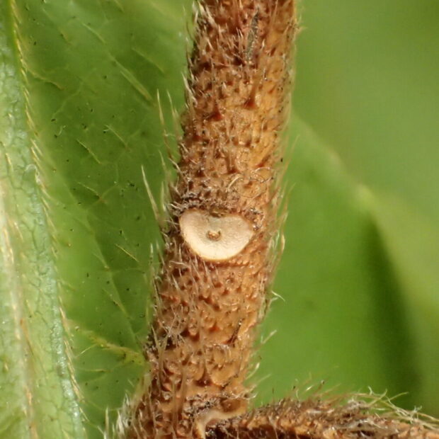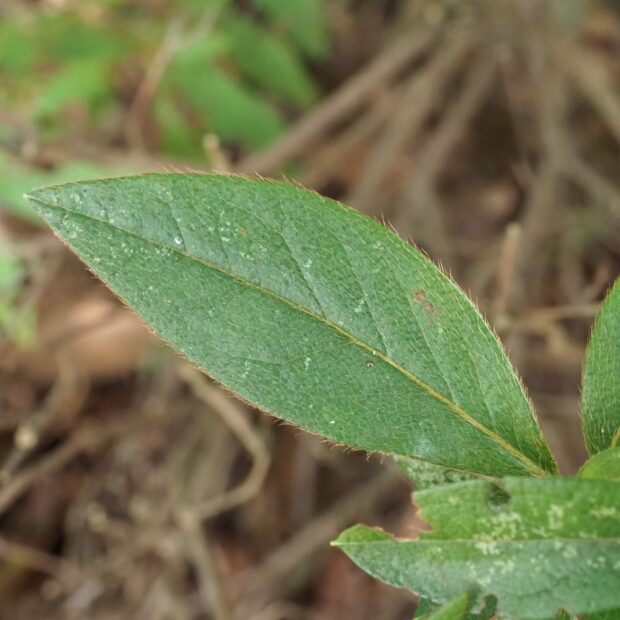 5~11cm。 葉の両面や枝にも毛が生えています。 洋服に貼り付けると、 貼りついて落ちません。