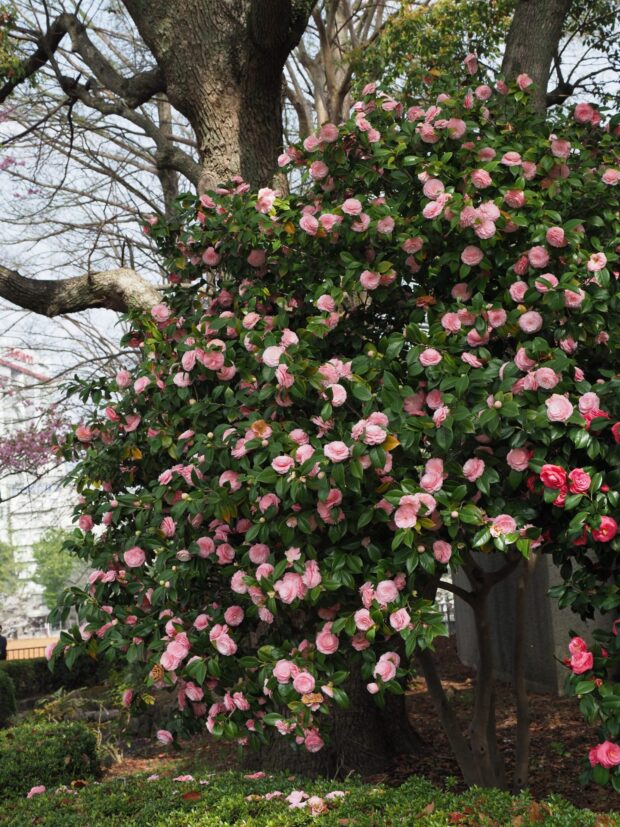 雪の多い地方に生えるユキツバキから作り出された園芸品種です。 数あるツバキにお品種の中では、 江戸時代から続く古い品種です。 成長がよく強い木なので、 街路樹などにもよく植えられます。 花びらは一枚ずつ散らずに最後に花ごと落ちます。