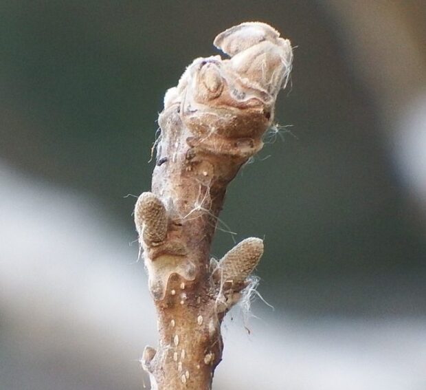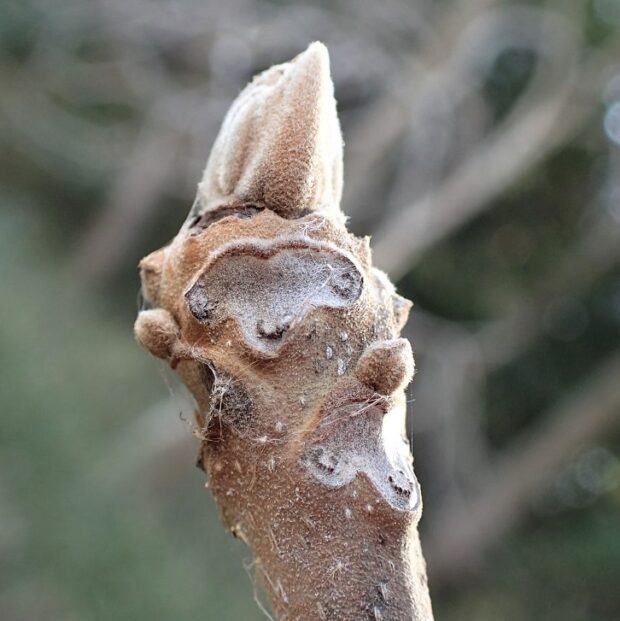 冬芽と葉痕は、 帽子をかぶった人の顔のようで面白いです。