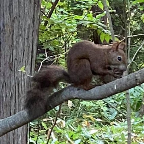 • オニグルミの実の硬い殻を割って中身を食べるエゾリス