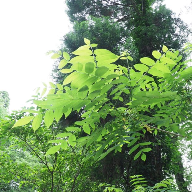小さな葉(小葉)が同じところから2枚ずつセットになって付きます。 小さな葉の羽状の集まりが、 本来の一枚の葉にあたります。