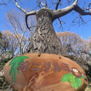 高さ7~10m。 背が低い木のわりには、 太い枝で独特な形の大きな葉っぱがついているので目立ちます。