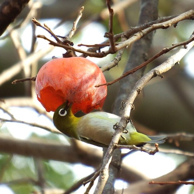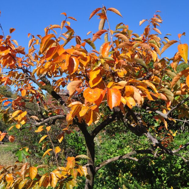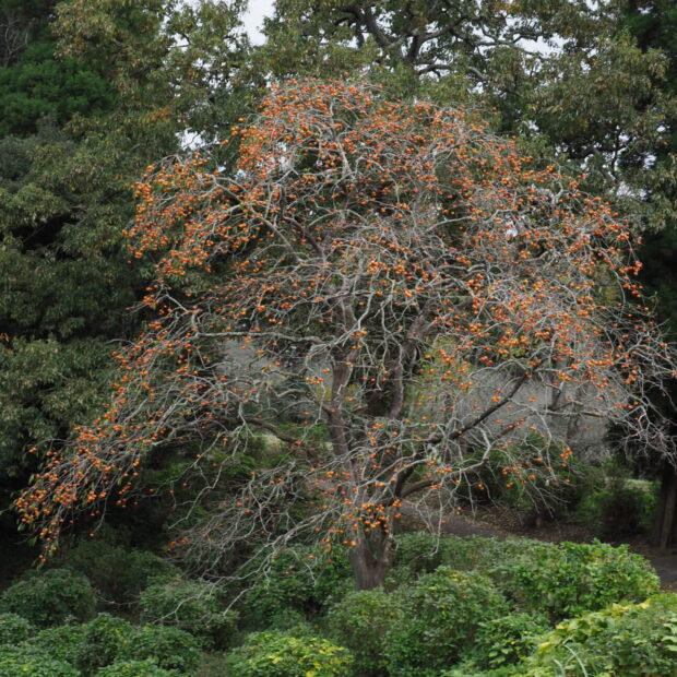 現在では甘柿も好まれますが、 かつて農家の庭先では渋柿の方が実の保存性がよく用途も広いということでよく植えられました。