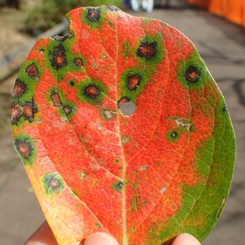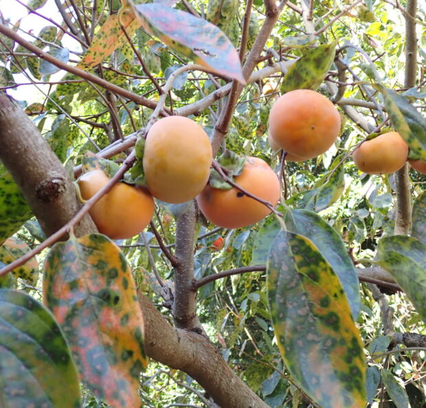 葉が落ちてたわわに実ったカキの実が残る木は日本の秋を代表する景観ですが、 じつは実より先に落葉するのは円星落葉病という葉の病気かかっているからだと言われています。