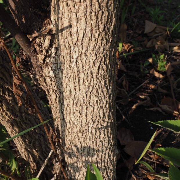 独特のひび割れのある樹皮です。