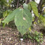 光沢のある葉で縁にギザギザはありません。 大きさは7~15cmぐらい。 秋にきれいに色づきます。
