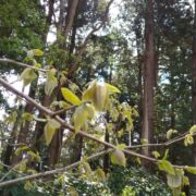 昔はカキノキは庭に植えられることが多く、 誰もが良く知る木でした。 柿の実だけでなく、 新葉は天ぷら、 柿の葉茶、 柿の葉寿司と葉も多才。