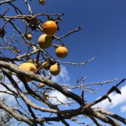 渋柿、 甘柿ありますが、 熟せばみんな甘くなります。 柿渋も材も使え、 幅広く利用できる木です。