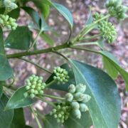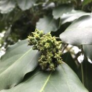 真夏に咲きます。 緑色で目立たない花ですが、 虫に大人気。 ぜひ見つけてください。
