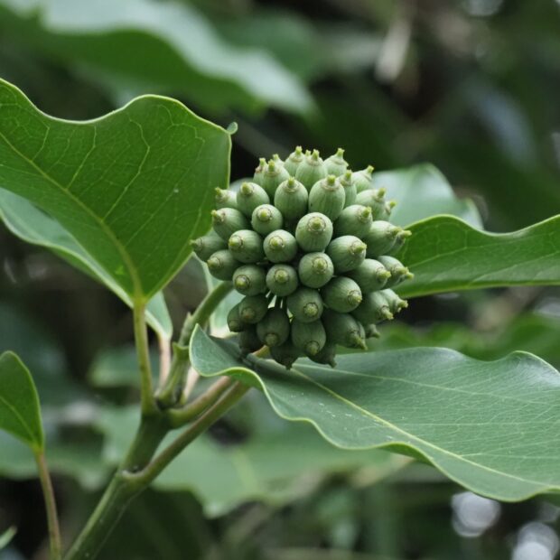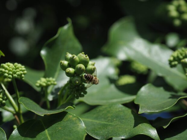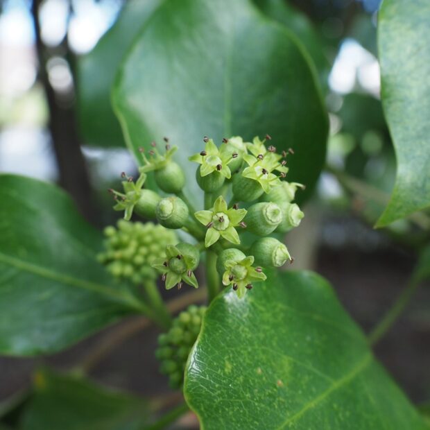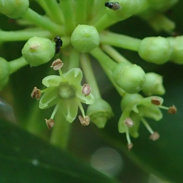 真夏に咲きます。 緑色で目立たない花ですが、 虫に大人気。 ぜひ見つけてください。
