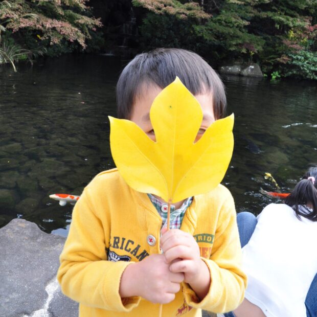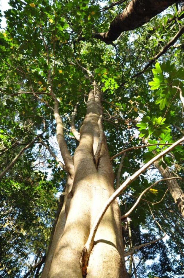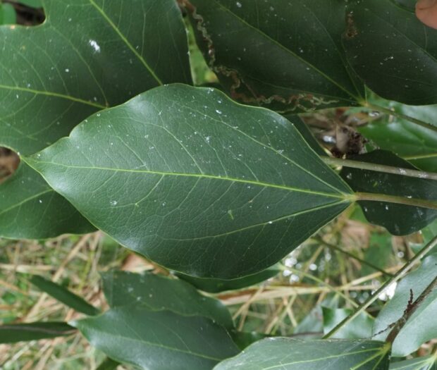 同じ木でも色んな形の葉っぱがあります。 特に大きな木には切れ込みのない普通の形の葉っぱが多くなります。