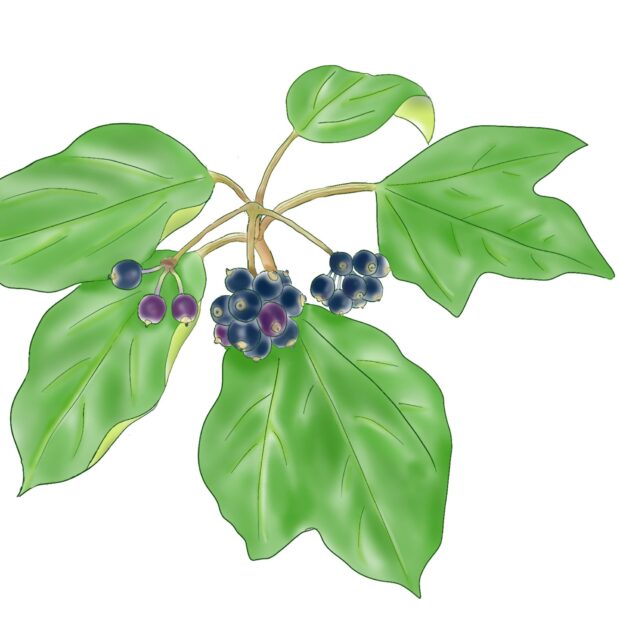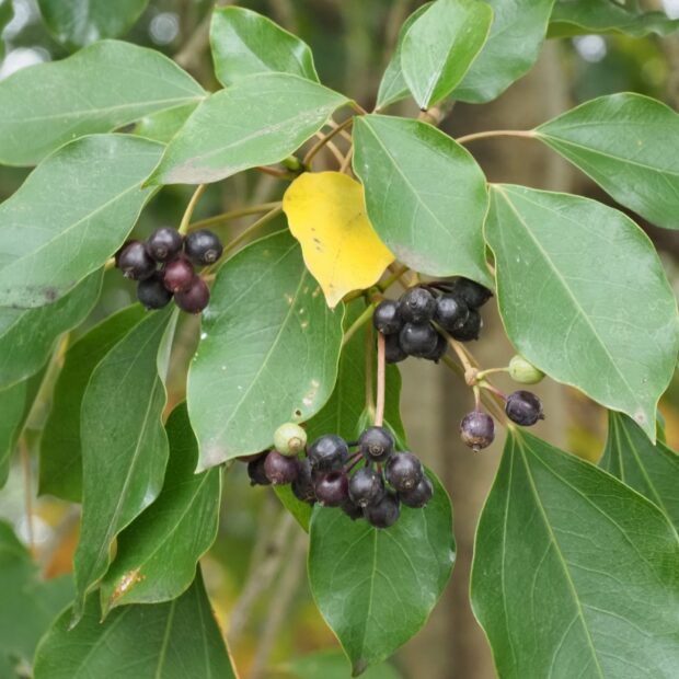 ヒヨドリなどの鳥が実を食べて、 フンと一緒にタネをまきます。