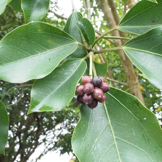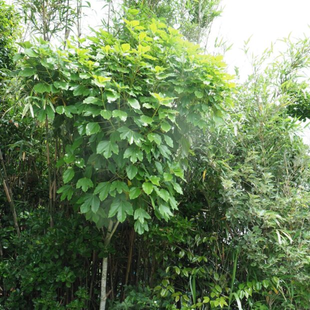 天狗のうちわのような面白い形の大きな葉っぱがつきます。