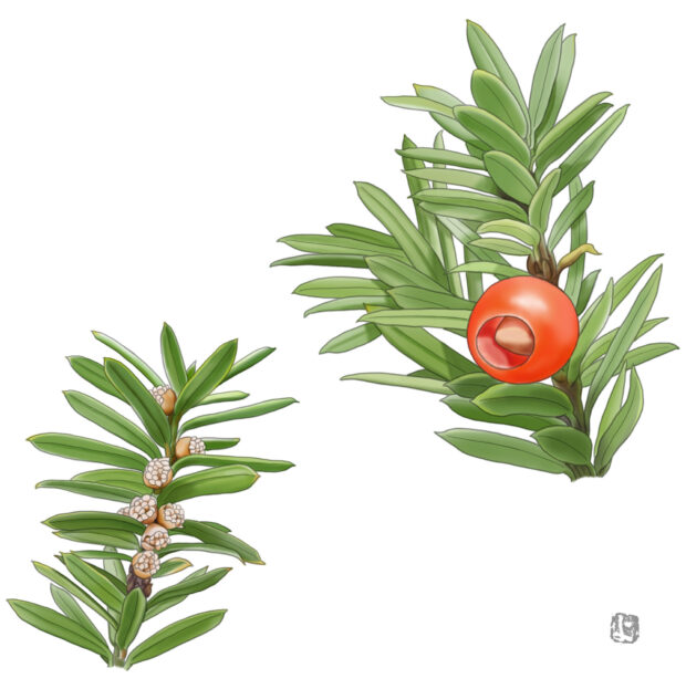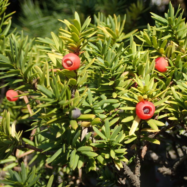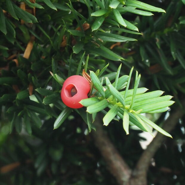 • 赤い部分は「仮種子」。 中の黒っぽいのが種子で有毒