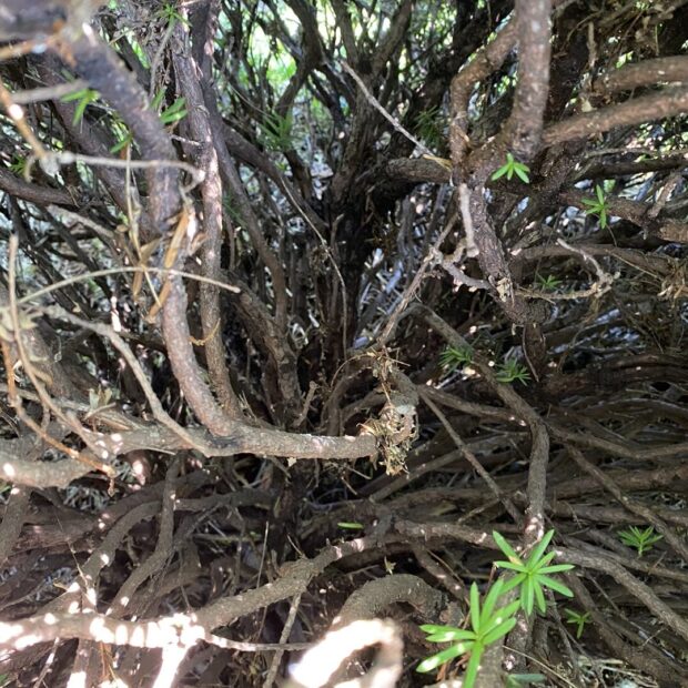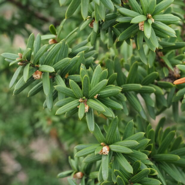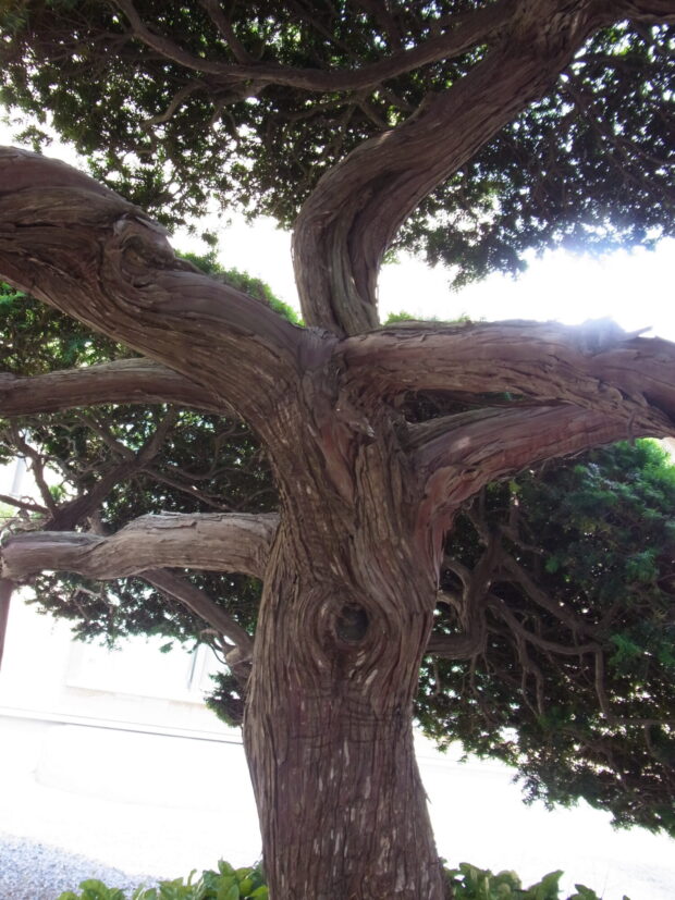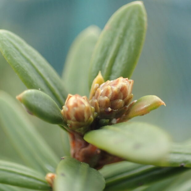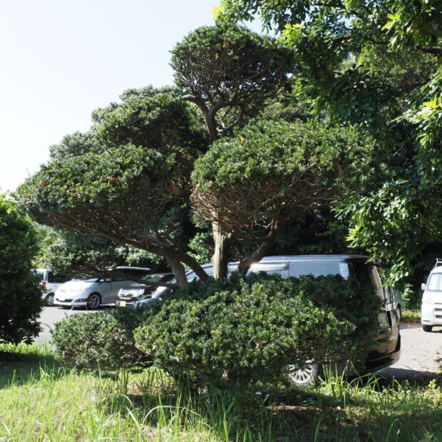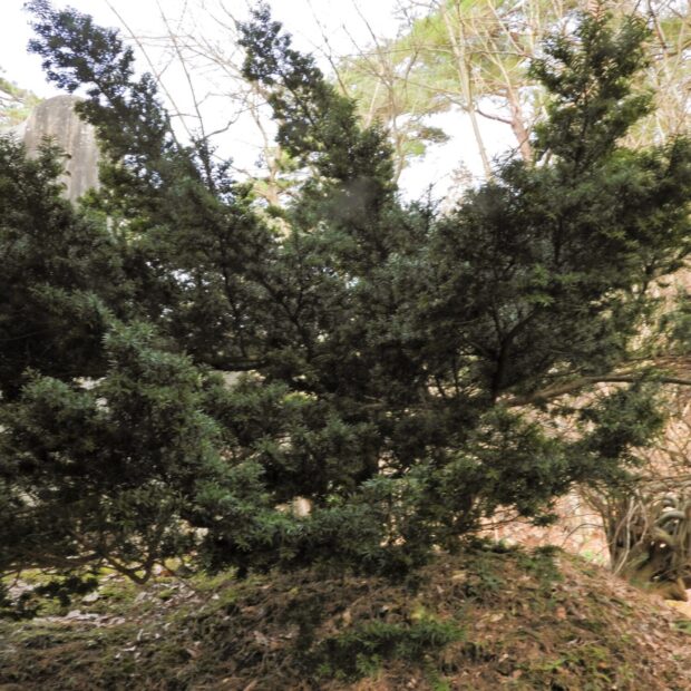 日本海側や山の尾根などが故郷です。 キャラボク(イチイの仲間)は針葉樹ではめずらしく葉に樹脂道がなく、 べたべたしないので枝を整えやすいです。 庭木として植えられたキャラボクは刈り込まれて、 野生の面影はないですが、 本来は風が強い尾根などで地面をはうように伸び、 過酷な環境で耐える力を持っています。